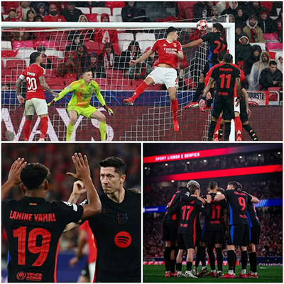 حقق فريق برشلونة الإسباني فوزاً تاريخياً على منافسه بنفيكا البرتغالي بنتيجة 5-4 في المباراة التي جمعتهما على ستاد (دا لوش) ملعب بنفيكا، ضمن منافسات الجولة السابعة من بطولة دوري أبطال أوروبا 2025_2024 .