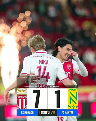 حقق موناكو فوزاً كبيراً على نانت بنتيجة 7-1 في المباراة التي أقيمت على ملعب لويس الثاني، ضمن الجولة 22 من الدوري الفرنسي .