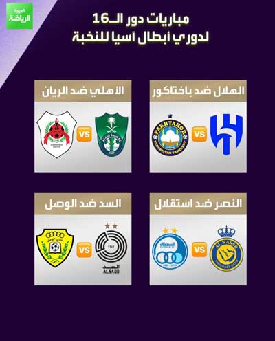 بعد نهاية مرحلة الدوري من دوري أبطال آسيا النخبة عن منطقة غرب آسيا للمجموعات، وتحديد الفرق المتأهلة لدور الـ 16 والتي ستلعب مبارياتها بنظام الذهاب والإياب