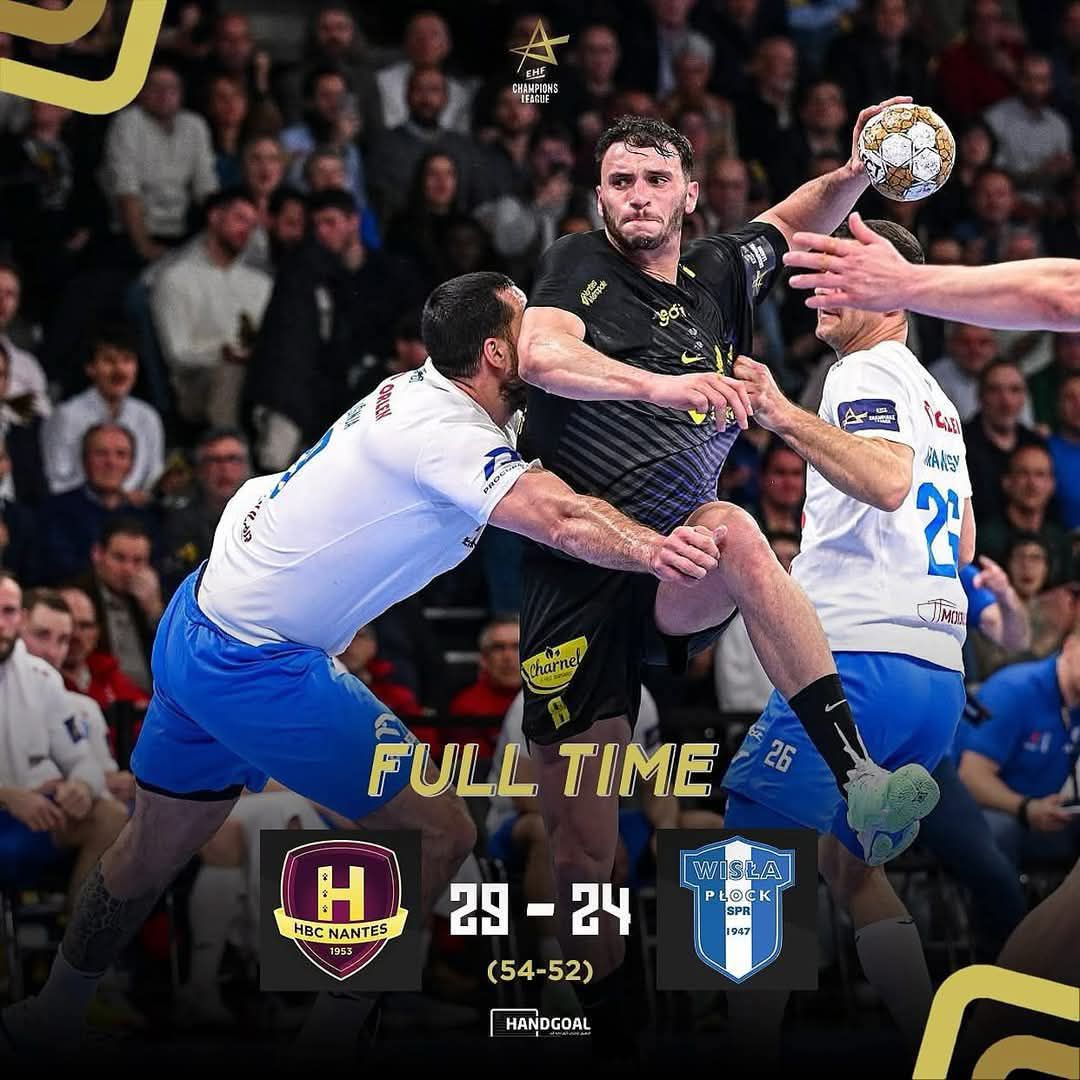 نادي نانت الفرنسي يقلب الطاولة على نادي فيسلا بلوك البولندي، ويحقق الفوز بنتيجة 29-24 في مباراة الإياب بفرنسا، ويتأهل للدور المُقبل ، بعد أن كان قد خسر في مباراة الذهاب ببولندا بنتيجة 28-25 .