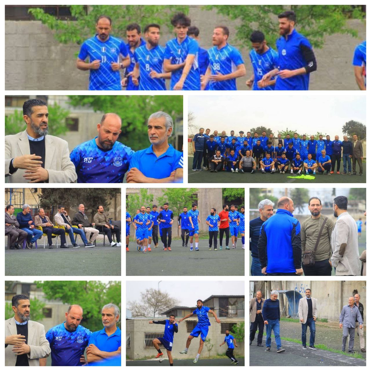 تدريبات اليوم (الأحد) شهدت حضور رئيس اللجنة التنفيذية للاتحاد الرياضي العام في دمشق نبيل الشحمة وعضوي اللجنة بشار قدور ومحمد جودت نحلاوي.