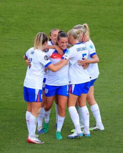 بات المنتخب الفرنسي للسيّدات قريباً من بلوغ ربع نهائي أمم أوروبا للسيّدات، بعد انطلاقته القوية، إذ حقق فوزاً عريضاً على المنتخب الويلزي بنتيجة (4-1) لحساب الجولة الثانية من المجموعة الرابعة للمسابقة القارية، والتي شهدت أيضاً فوزاً كبيراً لمنتخب إنكلترا على هولندا، برباعية نظيفة، وسجل أهداف المنتخب الفرنسي كل من: كلارا ماتيو،