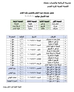 وعلى أساس هذه القرعة، تمّ وضع الجدول الخاص لمباريات هذه البطولة المذكورة، على أن تنطلق مبارياتها يوم الجمعة القادم.