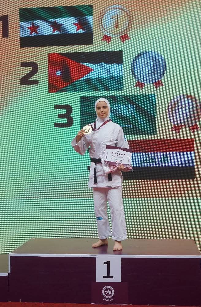 فيما توّجت بالميدالية البرونزية بطلتنا لجين علاء الدين، في وزن (63) كغ، والبطل يوسف عواد، في وزن (81) كغ.
