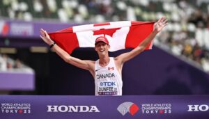 وهو اللقب العالمي الأول للعداء الكندي بعدما كان اكتفى بالمركز الثالث في سباق (50) كلم مشياً في الدوحة عام (2019) والألعاب الأولمبية في طوكيو (2021).