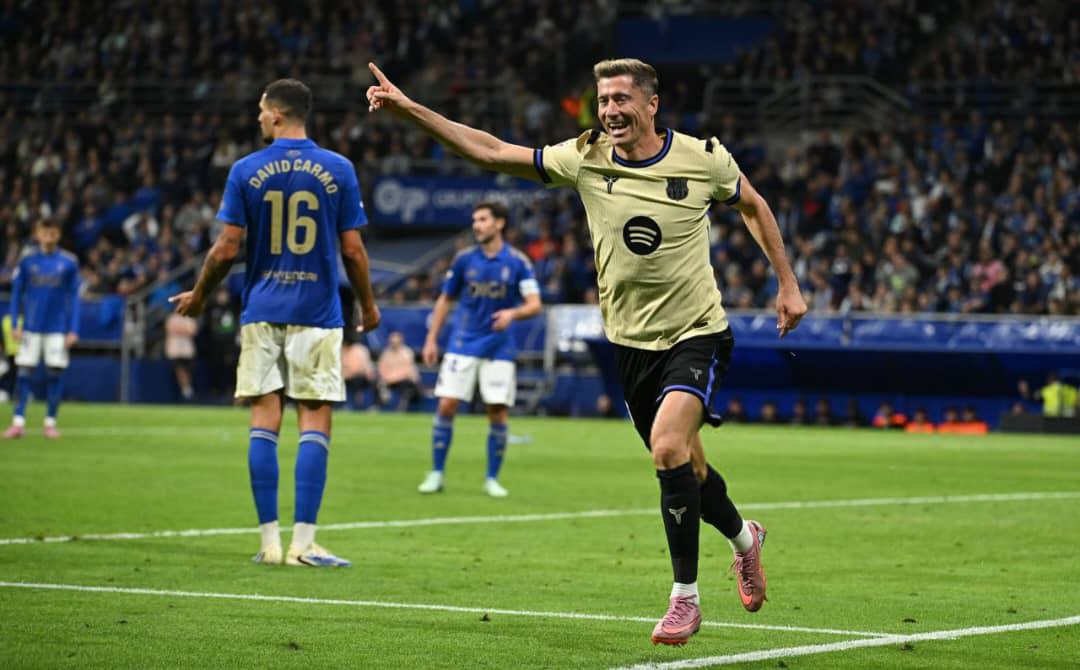 أريك غارسيا، وروبرت ليفاندوفسكي، ورونالد آراخو في الدقائق (56 و 70 و 88) على التوالي، في المقابل سجل البرتو رينا هدف فريق ريال أوفييدو في الدقيقة (33).