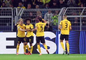 وفي لقاء مانشستر سيتي مع موناكو ، على ملعب لويس الثاني، خطف نادي موناكو تعادلاً مثيراً في اللحظات الأخيرة بنتيجة (2-2) افتتح الضيوف التسجيل، عن طريق النرويجي إيرلينغ هالاند في الدقيقة (15) لكن الرد جاء سريعاً من موناكو عن طريق جوردان تيزيه، بعد ثلاث دقائق فقط، وفي الدقائق الأخيرة من الشوط الأول، عاد هالاند ليوقع على هدفه الشخصي الثاني في الدقيقة (44) ليعود موناكو، ويسجل هدف التعادل من ركلة جزاء في الدقيقة (90) نفذها إريك داير نفذها بنجاح، ليرفع مانشستر سيتي رصيده إلى (4) نقاط في المركز الثامن، بينما خطف موناكو نقطته الأولى في البطولة في المركز الثلاثين.