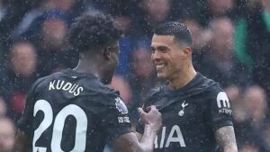 حقق فريق توتنهام على نظيره ليدز يونايتد، بنتيجة (2-1) في المُباراة التي جمعتهما على ملعب “إيلاند رود” ضمن مُنافسات الجولة السابعة من الدوري الإنكليزي المُمتاز ، افتتح ماتيس تيل التسجيل لصالح توتنهام في الدقيقة (23) قبل أن يتمكن نوا أوكافور من تعديل النتيجة لصالح ليدز في الدقيقة (34) وفي الدقيقة (57) أعاد محمد قدوس التقدّم لتوتنهام وسجل هدف الفوز الثمين، بهذه النتيجة، رفع توتنهام هوتسبير رصيده إلى (14) نقطة، ليصعد إلى المركز الثالث في جدول ترتيب الدوري، بينما تجمد رصيد ليدز يونايتد عند (8) نقاط، في المركز (13)