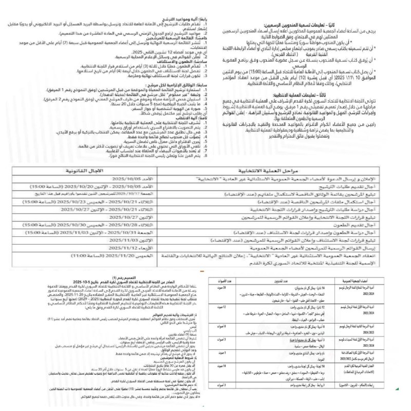 وجاء في التعميم الرسمي، بأن الانتخابات المُقبلة ستُقام يوم الخميس (2025/11/20) الساعة الحادية عشرة، فيما ترسل القوائم الرسميّة للمرشحين لأعضاء الجمعية العموميّة يوم الأربعاء (2025/11/12) على أن يبدأ باب الترشح للانتخابات، اعتباراً من يوم أمس الأحد (2025/10/5) وينتهي يوم الإثنين (2025/10/20) الساعة (15:00) وتضمنت موافقة الفيفا كل ما قامت به لجنة الانتخابات بطلبها، وهو الدعوة لجمعية عمومية، وإجراء بعض التعديلات على بنود اللائحة الخاصة به، وبحسب التعميم الرسمي للأمانة العامة، فإن الفيفا وافق أيضاً على تكليفات اللجنة الانتخابية، الخاصة بإدارة العملية الانتخابية المُقبلة، مُشدداً على عدم ترشح أعضائها لهذه الانتخابات.