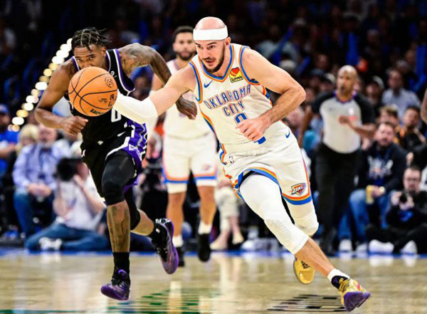 حقق أوكلاهوما سيتي ثاندر، حامل اللقب، فوزه الخامس توالياً، على حساب ضيفه ساكرامنتو كينغز (107-101) في دوري كرة السلة للمحترفين (إن بي إيه) بينما حقق فيلادلفيا سفنتي سيكسرز فوزه الرابع توالياً، على مُضيفه واشنطن ويزاردز (139-134) بعد التمديد، في المُباراة الأولى على ملعب بايكوم سنتر في أوكلاهوما، وقد عاد ثاندر بفوز ثمين حققه في نهاية اللقاء، بمواجهة الفريق الزائر، ونجمه الليتواني دومانتاس سابونيس صاحب (10) نقاط و(18) متابعة، واشتعل الصراع في مباراة لم يتعد خلالها الفارق العشر نقاط بين الفريقين، ورغم أن كينغز تفوق في بعض فترات الربع الأخير، فإنه رضخ أمام المضيف في نهاية المطاف.