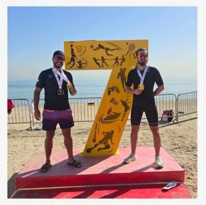 وجاءت الذهبية الأولى عبر اللاعب محمد فهد بنا في سباق سوبر سبرينت ترياثلون لفئة الناشئين، بينما حقق اللاعب أحمد حلوة ذهبية سباق سوبر سبرينت ترياثلون لفئة تحت 23 سنة.