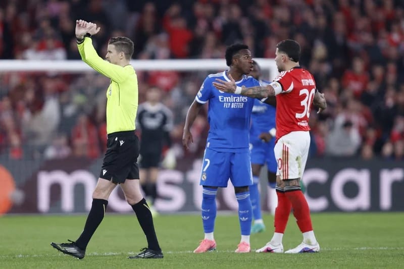 وخلال مباراة الذهاب التي انتهت بفوز ريال مدريد بنتيجة 1-0، اتهم المهاجم البرازيلي للنادي الإسباني، فينيسيوس جونيور، صاحب هدف اللقاء الوحيد، لاعب بنفيكا، الأرجنتيني جانلوكا بريستياني، بتوجيه إهانة عنصرية له.