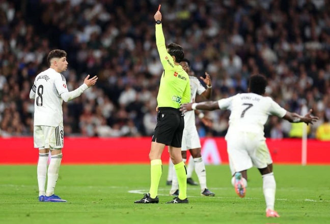 تعقدت مهمة ريال مدريد في الدقائق الأخيرة بعد إشهار البطاقة الحمراء في وجه فالفيردي (77)، إلا أن “الميرينغي” صمد أمام الضغط الكثيف لأتلتيكو، الذي كاد أن يخطف التعادل عبر تسديدة خوليان ألفاريز التي ارتدت من القائم.