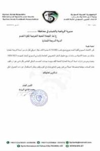 وقد حصلت “الموقف الرياضي” على نسخة من كتاب الاتحاد السوري لكرة القدم، والذي أكد فيه قراره بتوزيع مبلغ وقدره 10,000 (عشرة آلاف) دولار أميركي لكل نادٍ من أندية الدرجة الممتازة.