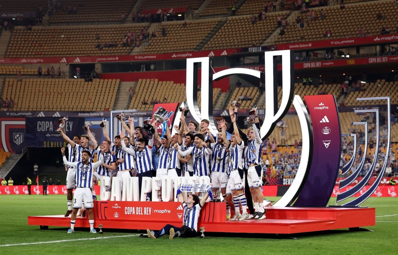 توج فريق ريال سوسيداد بطلاً لكأس ملك إسبانيا بفوزه على أتلتيكو مدريد بركلات الترجيح 4-3 بعد نهاية الوقتين الأصلي والإضافي بنتيجة 2-2 في المباراة النهائية للبطولة التي جمعت الفريقين مساء أمس السبت على ملعب “لا كارتوخا”.