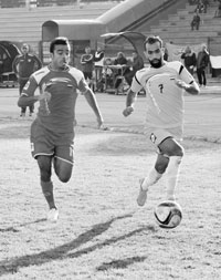 على ارض الواقع ومن خلال المتابعة الميدانية الموقف الرياضي رصدت الفريق في أول تمرين رسمي له بقيادة المدرب انس صاري الذي تسلم مهامه يوم الأحد الماضي والبداية كانت من الدرس النظري الذي شرح خلاله المدرب المهام المطلوبة من اللاعبين في هذه المرحلة وضرورة الالتزام بالتدريبات والتعليمات وبذل مزيد من الجهد خوفا من ضياع ما تم انجازاه في المراحل السابقة وتطرق المدرب لشرح بعض الأخطاء التي وقع فيها اللاعبون في مباراة الكرامة الأخيرة وطالب الجميع بضرورة الحذر منها. وانتقل الفريق بعدها إلى ارض الملعب لإجراء الحصة التدريبية التي بدأت بالإحماء وكان النظام هو السائد بين الجميع وأجرى الفريق تدريبات بنصف الملعب تهدف إلى تنفيذ عملية المراقبة اللصيقة للخصم فيما يقوم اللاعب الذي يتعرض للمراقبة بتحويل الكرة إلى زميله تحت الضغط ونفذت جميع التدريبات بحماس واندفاع شديد وبتوجيه مباشر من الجهاز الفني وشهد التمرين غياب اللاعبين رأفت مهتدي والحارس خالد إبراهيم وتبين أنهما التحقا مع المنتخب الوطني وفي اليوم الثاني شوهد عودة الحارس خالد الحاج عثمان إلى التدريبات الخفيفة بإشراف المعالج محمد عكاش بعد إجراء العمل الجراحي .