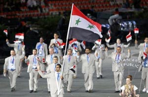 وجرت قبل انطلاقة المنافسات الرسمية مراسم حفل رفع العلم السوري بالقرية الأولمبية بحضور جميع أعضاء الوفد وعدد من الضيوف من أبناء الجالية السورية وبعد الإنتهاء من الإحتفال الذي قدمه عدد من الشبان والشابات من البلد المضيف بطريقة فلكلورية قامت عمدة القرية الأولمبية بدعوة رئيس الوفد د. ماهر خياطة إلى منصة الشرف لتبدأ مراسم رفع العلم وترديد النشيد العربي السوري من قبل