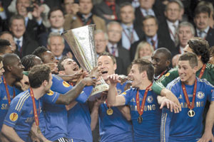 مع ارتفاع درجة حرارة المباراة من الطرفين وأمام التفوق الانكليزي في الركنيات الحاسمة كأسلحة ماضية في فعلها تأتي الركنية القاتلة على رأس المدافع ايفانوفيتش في الدقيقة 93 لتحسم كل شيء ويسرق البلوز لقباً كان بنفيكا« نظرياً» أكثر قرباً في ملامسته من خصمه الأزرق.. ليصبح تشيلسي أول فريق أوروبي يفوز بمسابقتي الشامبيونز ليغ واليورو باليغ في عامين متتاليين.