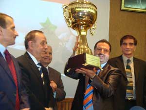 وقدمت اللجنة كأس دوري المحترفين لرئيس نادي الكرامة متصدر الدوري في الموسم الماضي ووزعت المكافآت المالية «الحقوق» وشهادات التقدير على الأندية وعدد من رؤساء فروع الاتحاد الرياضي العام في المحافظات.