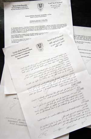 يشار الى ان اللواء موفق جمعة رئيس الاتحاد الرياضي فاجأ اللجنة المؤقتة بالمترجم الذي اصطحبه معه من اجل ترجمة الكتاب الذي سيرسل الى الفيفا وهو السيد ناصر السيد مدير اللجنة الاولمبية السورية.. واللافت في كلام الجمعة خلال المؤتمر تأكيده بموعد اجراء انتخابات الاتحاد والمقرر يوم 26/7/2010 مع تأكيده لبعض وسائل الاعلام بأن لا تعيين سيكون في اتحاد الكرة، وستتم عملية انتخاب اتحاد الكرة كما تم انتخاب باقي اتحادات الالعاب.
