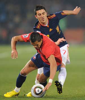 خرجت اسبانيا من عنق الزجاجة وانتزعت بطاقة التأهل إلى الدور الثاني لبطولة كأس العالم اثر فوزها على منتخب تشيلي 2/1 بعد مباراة عنيفة في شوطها الاول الذي انتهى بتقدم المنتخب الاسباني بهدفين سجلهما ديفيد فيا وأندريس إنييستا في الدقيقتين 24 و37 وفشل الفريق في زيـــادة رصيده من الأهداف رغم النقص العددي في صفوف منافسه بعد طرد اللاعــب ماركو اســترادا في الدقيقة 37 .