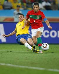 في المجموعة السابعة شاهدنا امس وجهين متناقضين في مباراة البرازيل والبرتغال التي توقعها المراقبون قمة مباريات الدور الأول دون أن تكون كذلك علماً أن الساحر رونالدو حاول ما بوسعه فاستحق للمباراة الثالثة نجومية المباراة ، ففي النصف الأول قدم المنتخبان عرضاً مقبولا بعد أداء اتسم بالخشونةً ما اضطر الحكم المكسيكي أرشيوندا لإشهار سبع صفراوات أربع للبرتغال، حيث لاحت فيه بوادر الهدف المبكر من الطرفين، ولكن النصف الثاني شهد انخفاض الأداء للحضيض فقوبل بصافرات استهجان الجماهير.