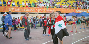 أحرزت لاعبة منتخب سورية الوطني لألعاب القوى لوريس دنون المركز الأول والميدالية الذهبية لسباق 800 متر جريا في دورة الألعاب الدولية السادسة لأطفال آسيا