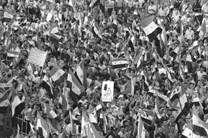 وما المسيرات المليونية التي شهدتها مختلف المناطق والمدن السورية من دمشق الى حلب ومن الحسكة الى اللاذقية إلى دير الزور والرقة إلى السويداء وحماة والسلمية إلى طرطوس إلا استفتاء شعبي لعملية الإصلاح الشاملة التي يقودها السيد الرئيس بشار الأسد هي رسالة وجهها الشعب السوري إلى جامعة الدول العربية جامعة الخزي والعار بشكل خاص وإلى العالم أجمع بشكل عام بأنه شعب بجميع أطيافه ومكوناته هو عائلة واحدة قوية متماسكة جذورها ضاربة في الأرض وفروعها تطاول السماء رفعة وإباء وشموخاً.