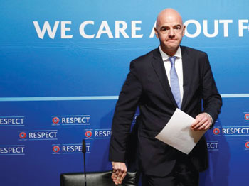 وقدم اينفانتينو خلال تجمع اقيم في استاد «ويمبلي» الشهير في لندن خطته للايام الـ90 الاولى من ولايته اذا انتخب رئيسا لـ «فيفا» في 26 شباط الجاري في زيوريخ.