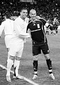 على أصدقاء نجم الكرة البرازيلي رونالدو, 6/2, في المباراة الخيرية الدولية التي جمعت الفريقين على استاد فيلودروم في مرسيليا الفرنسية .وتأتي هذه المباراة برعاية برنامج الأمم المتحدة الإنمائي حيث خصص ريعها لمكافحة الفقر في العالم, وقاد كل من زيدان ورونالدو فرقهم في هذه المباراة التي جاءت استعراضية وممتعة من كلا الفريقين الذين شاركا في مباريات منفصلة بهذا الخصوص.وهذه هي المباراة الرابعة من هذا النوع في إطار برنامج مكافحة الفقر بعد الأولى في بال السويسرية (2003) والثانية في مدريد (2004) والثالثة في دوسلدورف الالمانية (2005) وحفل اللقاء الخيري بمشاركة كابتن المنتخب السعودي سامي الجابر الذي سجل هدفاً, ولعب رونالدو طوال الشوط الأول قبل أن يغادر الملعب, غير أن زيدان أكمل المباراة وخرج في منتصف الشوط الثاني بعد لمسات فنية ساحرة أمتعت الجماهير. سجل لفريق أصدقاء زيدان (روني خطأ في مرماه وأنطوني سيشي والممثل الكوميدي المغربي جمال ديبوز وسامي الجابر وسوني أندرسون) وللخاسر ( الأسباني جيرارد والأسباني خافيير بورتيو 2).‏