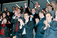 الشمس تشرق من جديد وليل حمص يلبس نور ألف قمر… السيد الرئيس بشار الأسد ها هنا, إنّه يحييني ويحييك, وابتسامته النابضة بالأمل تمتدّ لتمسح البرد من أعماق كلّ القلوب في ملعب خالد بن الوليد…